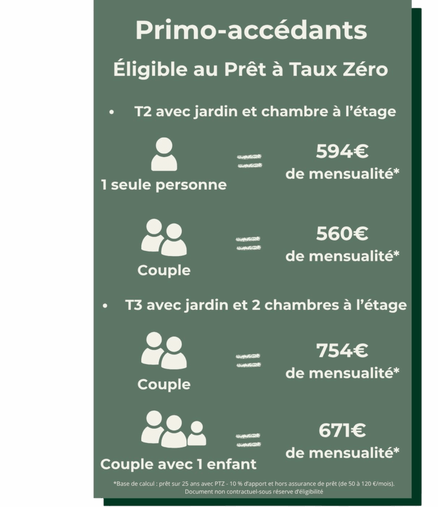 Avec des logements à partir de 146 000€, l’accès à la propriété est possible pour le prix d’un loyer grâce au Prêt à Taux Zéro (sous conditions d’éligibilités).